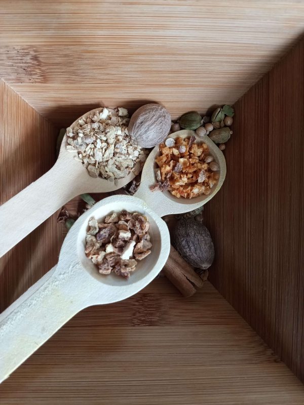 Ingredients: cinnamon, ginger, lemon peels, orange peels, coriander, nutmeg, cardamon.