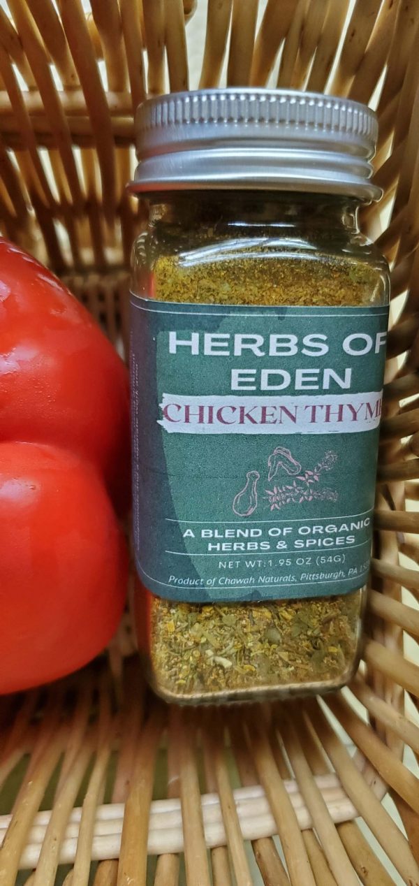 - Chicken Thyme is a combinations of herbs and smoked spices which give this spice blend its unique flavor. It pairs well with poultry and meats. A great choice for grilling!