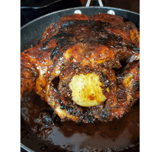 This chicken is tasty and fancy. It can be served on any occasion or just a regular family dinner. This chicken feed five people twice and we used the bones for broth. So, I guess you can say it served us three times. I used the broth to make soup.