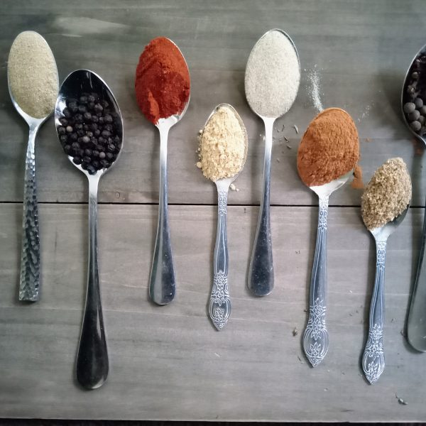 Ingredients: Ground coriander, cumin, sweet paprika, garlic powder, onion powder, oregano, black pepper, turmeric, ginger, cayenne.