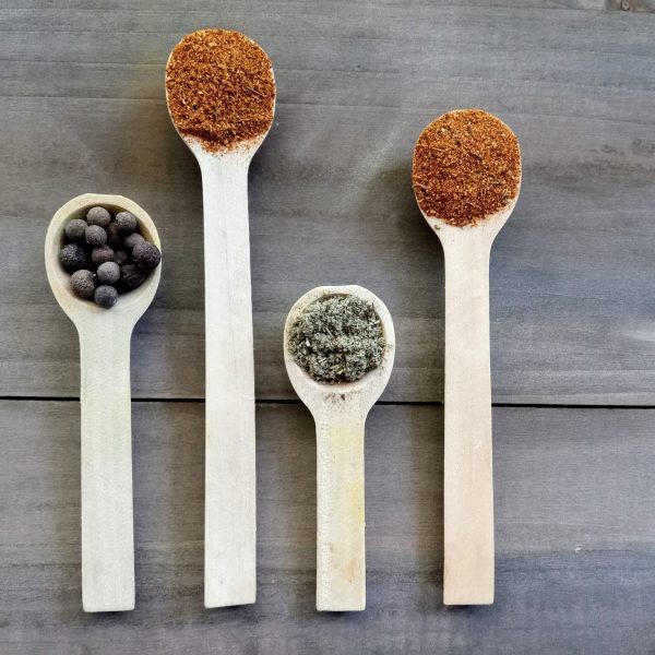 Ingredients: Coriander, Ancho chili, smoked paprika, black peppercorn, dried oregano, dried thyme, ginger, granulated garlic, granulated onion, turmeric, brown sugar, cinnamon, nutmeg, cumin, all spice berry, sage, cayenne, habenaro.
