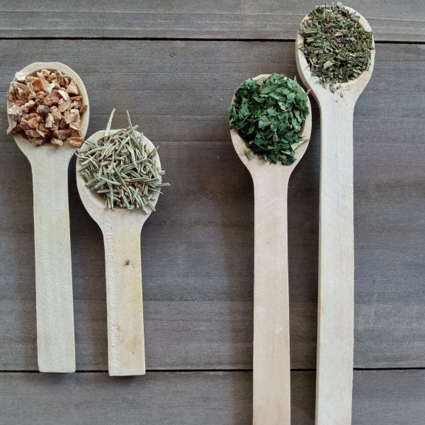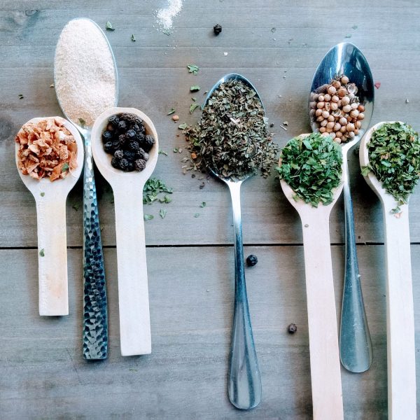Ingredients: Dried curry leaves, marjoram, basil, spinach, and kale, garlic and onion powder, smoked paprika., turmeric, black peppercorn.